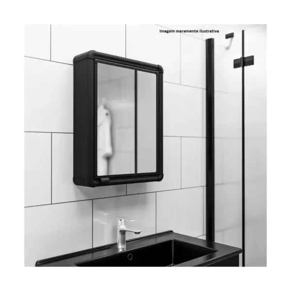 Armário Plástico com Perfil em Alumínio de Sobrepor 1 Porta 35x45cm Preto