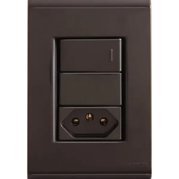 Conjunto 4×2 com 1 Interruptor Simples 10 a 250 V e 1 Tomada 2p+t 10 a 250 V Tramontina Liz Grafite Tramontina