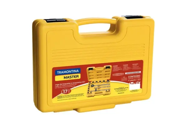 Jogo de Soquetes Estriados Encaixe 1/2 em Aço com Acabamento Cromado e Maleta 17 Peças