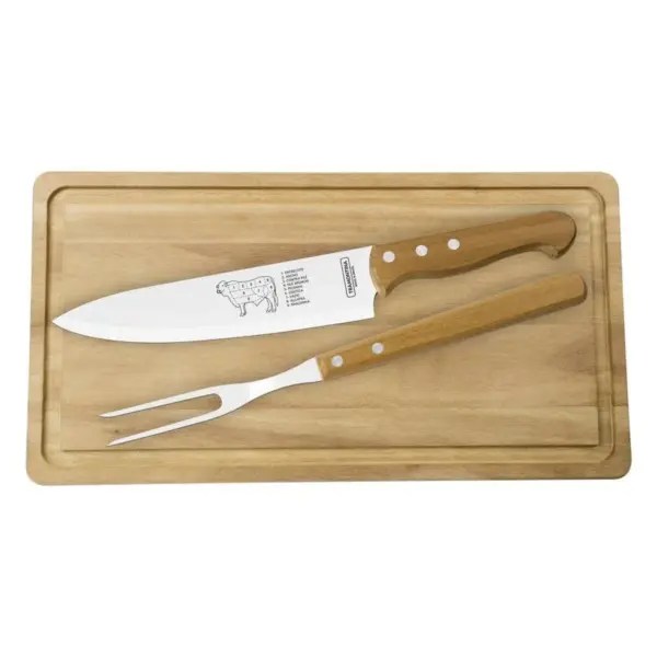 Kit para Churrasco com Lâminas em Aço Inox e Cabos de Madeira Natural 3 Peças – Tramontina