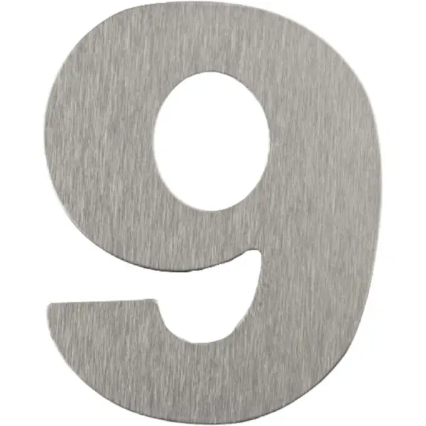 Número Residencial de Alumínio Escovado com Adesivo, 9 (nove), Cor Prata, Linha Primafer, Atlas.