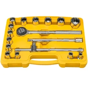 Jogo de Soquetes Estriados Encaixe 1/2 em Aço com Acabamento Cromado e Maleta 17 Peças