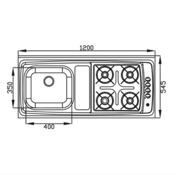 Pia com Fogão 4 Bocas Automático Direito 1,20 X 0,545m