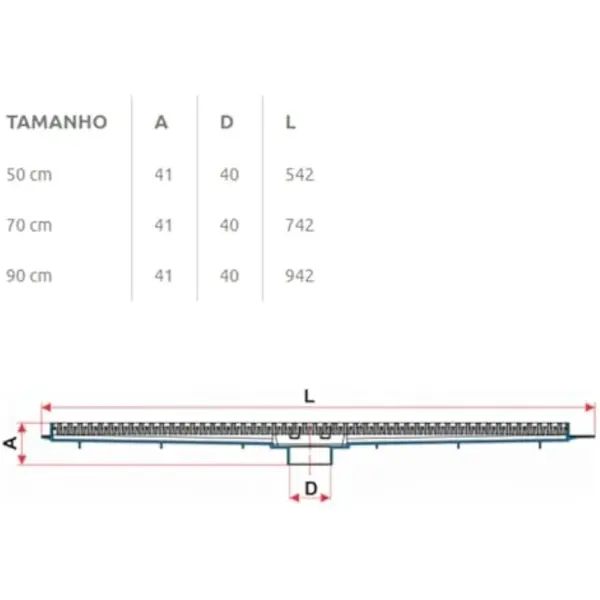 Ralo Linear com Grelha 70cm Branca