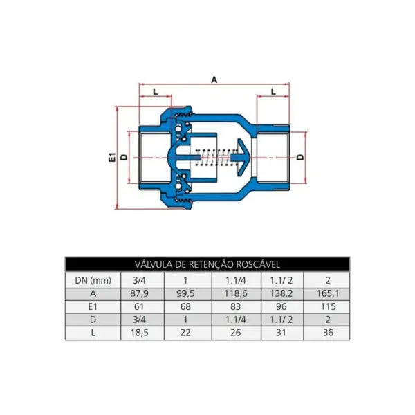 Válvula de Retenção Roscável 1.1/2” – 27957234 – Tigre – Válvula de Retenção Roscável 1.1/2” – 27957234 – Tigre